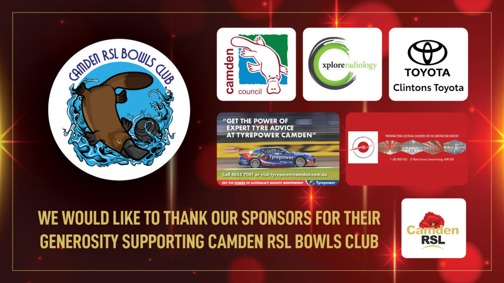 We would like to thank our sponsors: Camden RSL, Camden Council, Design & Construct Electrical, Tyrepower, Camden, X-plore Radiology, Camden, Aesthetic Dental & Denture Clinic, Camden and Clintons Motors.
